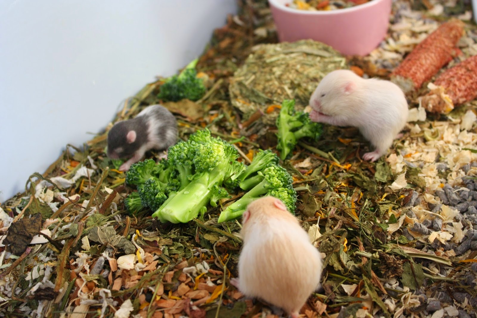 17 dager gamle: Gjengen oppfører seg nå som voksne minihamstere. |